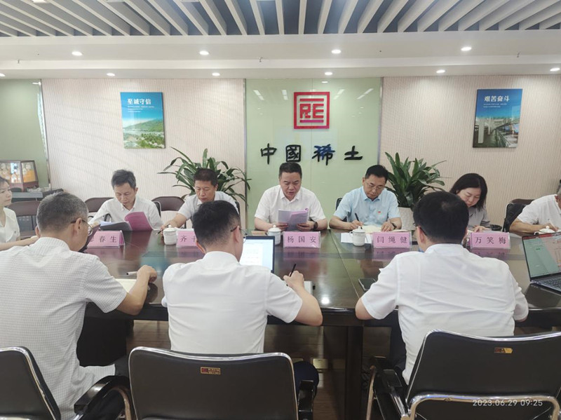 6月29日,中國(guó)稀土集團(tuán)黨委副書(shū)記、董事楊國(guó)安到中國(guó)稀土股份開(kāi)展主題教育專題調(diào)研并講授專題黨課。公司黨委副書(shū)記、總經(jīng)理閆繩健主持,集團(tuán)黨委主題教育第三巡回指導(dǎo)組成員、公司黨政領(lǐng)導(dǎo)班子成員出席。